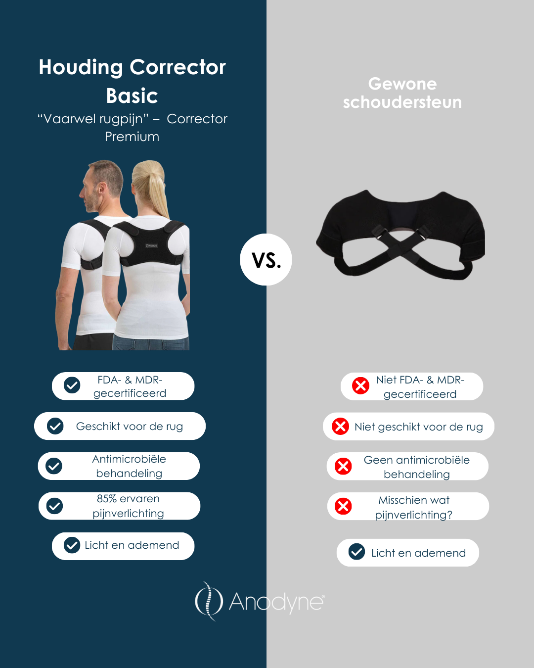 Houding Corrector Basic VS Normale schoudersteun