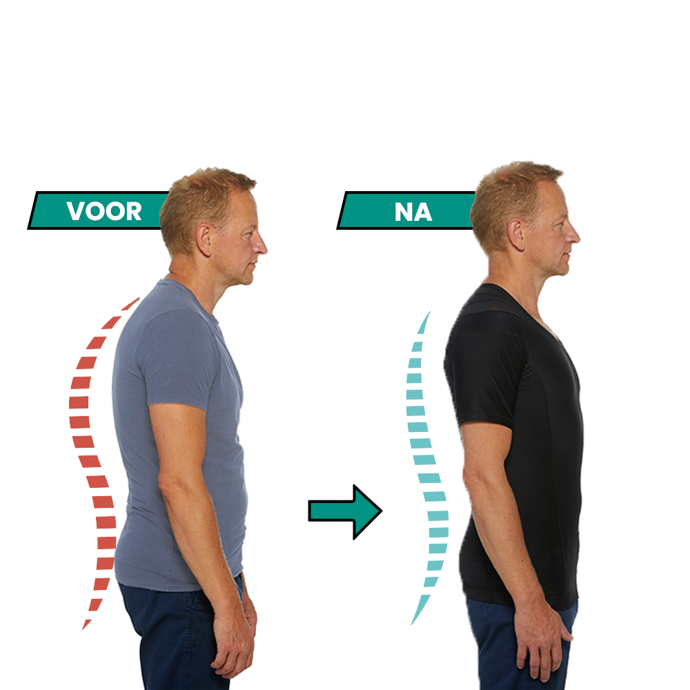 Ons Posture-shirt combineert geavanceerde technologie met comfortabele materialen om je houding te verbeteren, pijn en spanningen te verminderen en je rug dagelijks te ondersteunen.